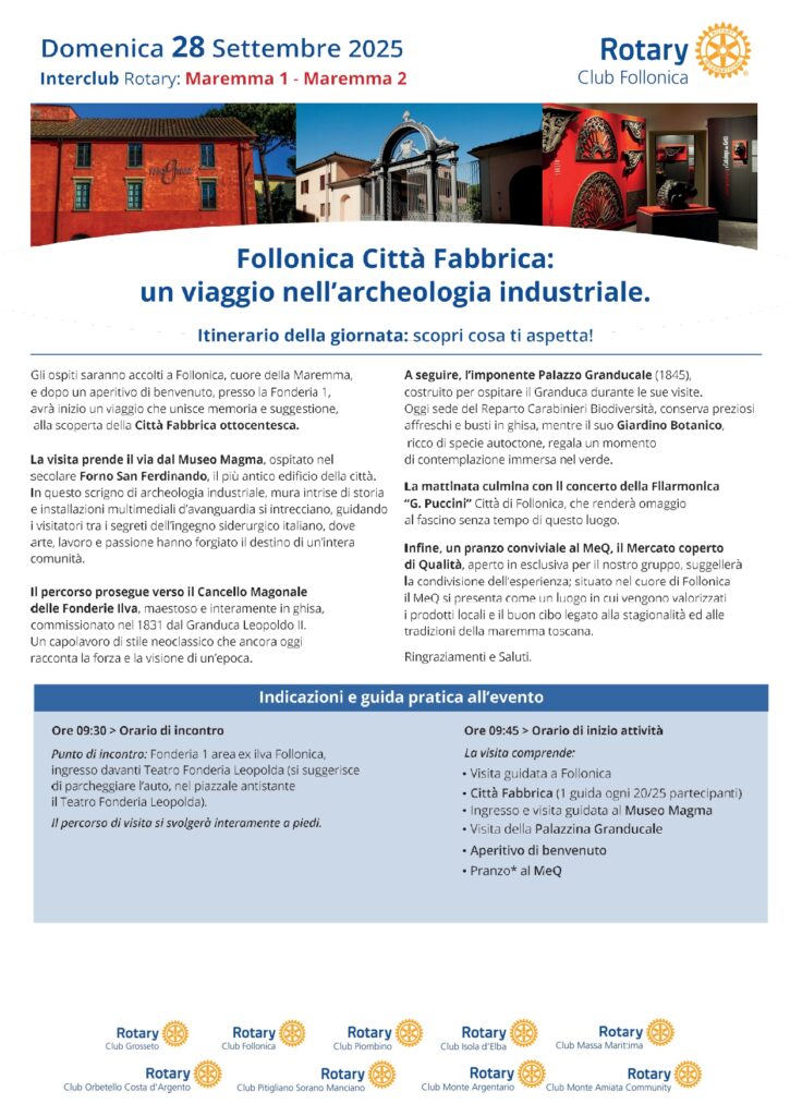 Domenica 28 settembre ha avuto luogo a Follonica, l’incontro organizzato dal Club locale e che ha visto presenti tutti gli altri Rotary Club appartenenti all’area Maremma 1 e Maremma 2.